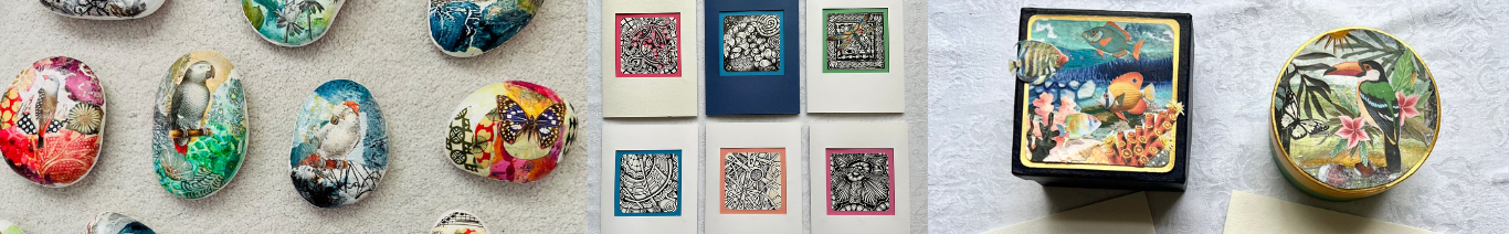 As a Certified Zentangle Teacher (CZT), Elaine loves introducing the meditative calm of the Zentangle Method, alongside the expressive freedom of silk painting and the joyful unpredictability of collage.